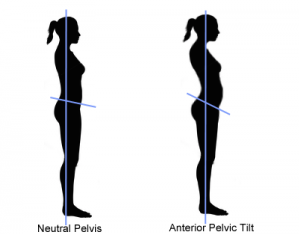 The second feature is what is called “anterior pelvic tilt,” which is fancy name for when your pelvis tilts forward and forces your butt to stick up and backward and your stomach to protrude out.