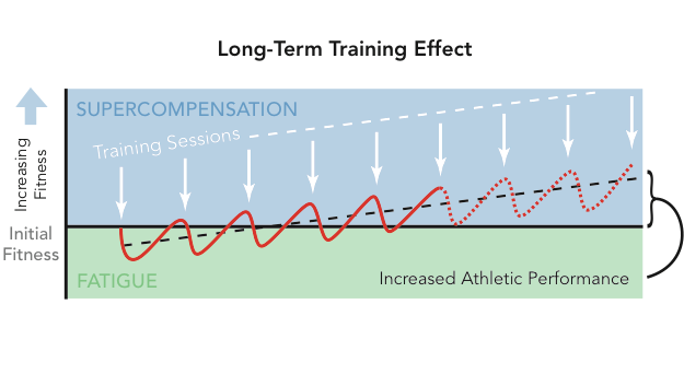 Now before I get into my weekly schedule outlines, I have to talk about a critical concept called the muscular super-compensation model (Science time people) that outlines how your muscles respond to and recover from exercise.