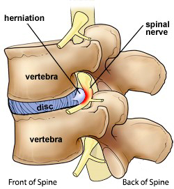 Because the herniated disc, once it is protruding out of it’s confined area, pushes directly on the nerve column that runs down your spine.