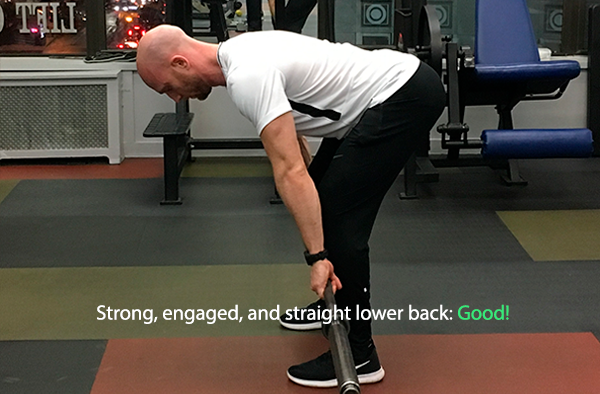 When lifting weights it is essential that you keep your lower back engaged, strong, and straight. Do NOT let it round.